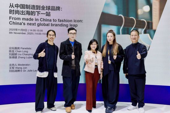 当前,中国时尚产业正迎来从“中国制造”迈向“全球品牌”的关键转折期——从享誉全球的“世界工厂”,向具有国际影响力的“全球品牌”实现历史性跨越。中国品牌正从“产品出海”全面迈入“品牌出海”的新阶段,彰显出中国设计与文化的独特魅力。刘钰涓介绍说:“今年是富睿玛泽就‘中国品牌’议题在进博会现场进行深度研讨的第五年。作为长期的观察者与推动者,富睿玛泽持续追踪中国品牌从制造到创造的升级之路,不断洞察并梳理中国品牌的发展轨迹与未来蓝图。在进博会期间,我们还特别邀请了CHEN.1988 女装品牌主理人陈龙,深圳洲升服饰实业有限公司创始人、创意总监刘超颖及日着RIZHUO品牌创始人张禄建以及中国服装论坛执行主席、北京盛世嘉年国际文化发展有限公司董事长王军做客《从中国制造到全球品牌:时尚出海的下一站》主题论坛,在富睿玛泽展台现场畅聊中国品牌如何走向全球。”