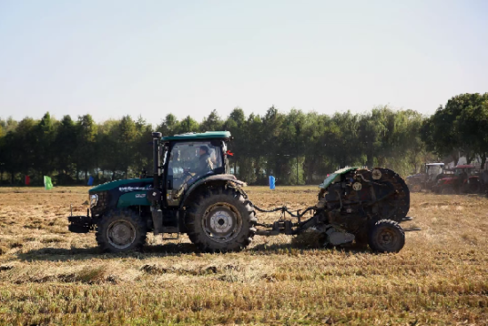 在田间,工作人员开动几款机器,实地演绎秸秆的收集过程。有的机器是一台拖拉机连接一个带有车轮的搂草打梱机,有的机器是履带式自己行走作业。秸秆可以打成方块状、圆球状,作业效率蛮高的。
