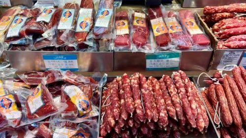 腊味与糟醉,则是上海年味里最正宗的“咸香底色”。走进三阳南货店,通道尽头便是曾登上《舌尖上的中国》的腌腊柜台,火腿、腊肉、香肠整齐码放,浓郁的咸香弥漫在空气中。而邵万生的糟醉系列同样热销,黄泥螺、醉蟹等经典品类,肉质鲜嫩、酒香醇厚,是年夜饭冷盘的必点之选。此外,第一食品商店的零食糖果、泰康食品的经典熟食,也都是市民采购年货的热门之选,一站式承包新春“嘴瘾”。