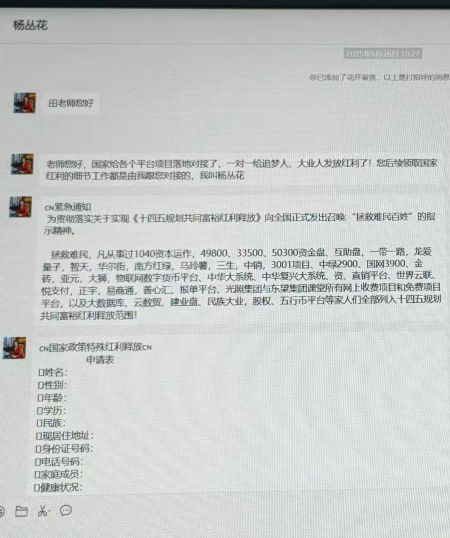 中新网上海新闻9月19日电(记者 殷立勤)近日,上海静安警方成功劝阻一名70岁老人陷入一起以“发放扶贫款”为名的复合型诈骗陷阱。该案中,诈骗分子以“中国梦”平台为幌子,声称可通过房地产投资、养老理财等项目发放“国家级扶贫款项”,实则诱导受害人赴外省进行线下接触,涉嫌触及诈骗等多重法律红线。