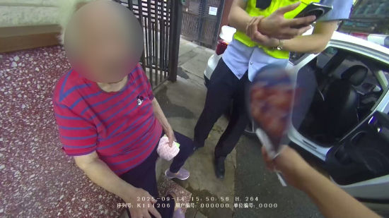 9月14日15时04分,静安公安分局曹家渡派出所接到群众报警:延平路446号门口,一位九旬老人长时间坐在弄口,疑似迷路。民警赵孙磊、潘勇迅速赶到现场,发现老人正攥着扇子不停扇风,额头沁出细密汗珠。