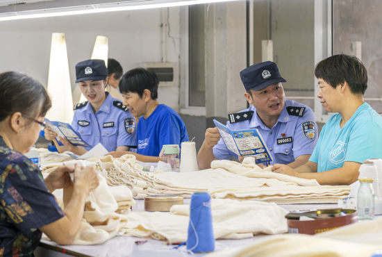 民警向企业员工开展防范电信网络诈骗宣传。沈群 摄