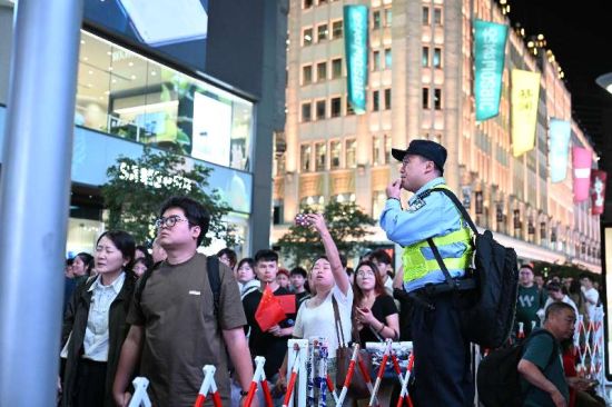 国庆期间,在外滩地区,上海警方根据人流变化,及时对南京东路、中山东一路及上下江堤通道采取拦截疏导、波次放行、单向循环等措施,防止人流对冲拥挤。