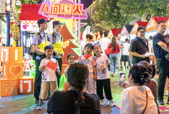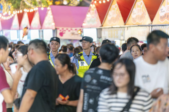 中新网上海新闻10月1日电(记者 殷立勤)近日,位于上海市崇明区城桥镇八一路步行街的2025年“城”心诚意·南门夜市正式拉开帷幕,为国庆中秋小长假期间市民休闲游玩提供了一个好去处。为确保夜市开业期间周边秩序平稳有序,上海市公安局崇明分局城桥派出所提前制定预案,科学配置警力在夜市周边开展安保执勤、动态巡逻、服务群众等工作,为市民群众平安出行保驾护航,为十一假期增添平安底色。(完)