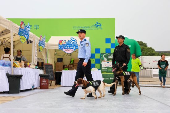崇明分局刑侦支队辅警在赛事嘉年华现场开展动态巡逻。崇明公安供图