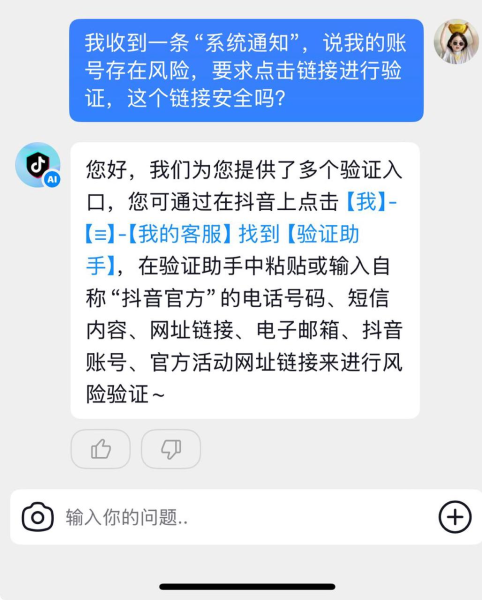 (图说:用户向“抖音反诈”咨询反诈相关信息)