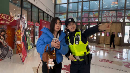 崇明分局经侦支队民警张运在万达广场开展便民服务工作。崇明警方供图