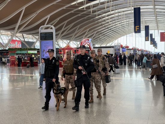 上海机场公安守护旅客出行平安。上海市公安局国际机场分局供图