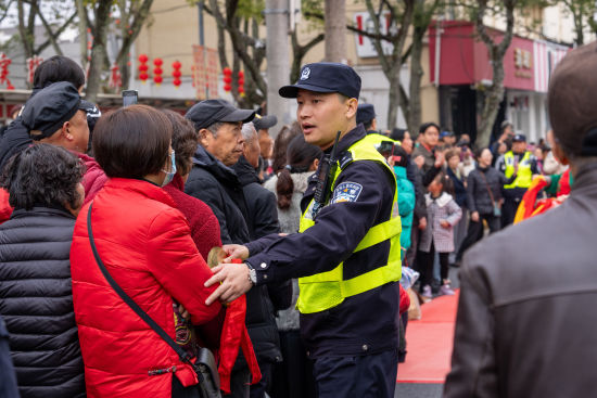 堡镇派出所民警在活动现场疏导聚集人群。沈群 摄