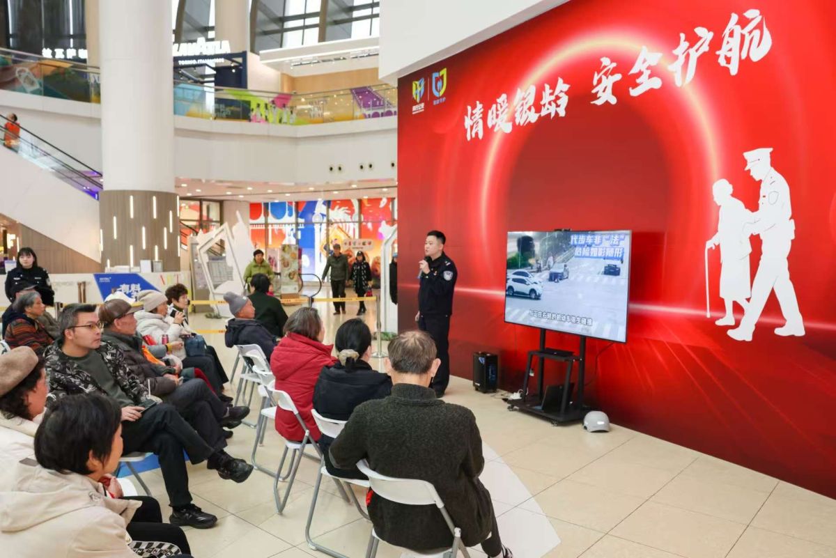 除了设置互动游戏体验区域,现场的另一边老人们正听民警讲解专门针对老年人的骗局套路。这一幕,也正式拉开了闵行公安3月“银龄守护”专项宣传活动的序幕。