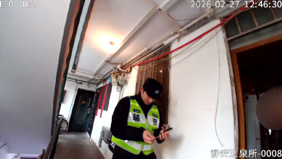 2026年2月27日12时31分,静安公安分局三泉路派出所接到反诈中心预警:辖区一名老人可能正在接听诈骗电话。民警陶维盛和辅警高波迅速赶往老人家中。推开门的瞬间,只见当事人乔阿婆仍在与诈骗分子通话,且已持续近一小时。