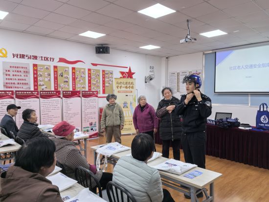 活动中,由交警、社区民警、交通文明助理讲师及志愿者组成的交通文明宣整队伍,分赴包括村居委、学校、快递外卖站点、重点运输企业、工地、卖场菜场、工业园区等场所在内的惠南镇14个宣传点位和20余个重点整治路口,全面开展交通安全宣传与隐患整治行动。在辖区事故高发路口,交警对各类交通违法行为开展执法整治和宣传告知,有警保联动车定点停靠,循环播放典型事故警示视频与安全出行科普短片,以直观画面敲响安全警钟;在惠南镇新时代文明实践分中心内,居民自编自导的交通安全主题小品精彩上演,通过还原骑车逆行、路口抢行等常见场景,以寓教于乐的方式引导群众规避交通风险;在社区居委,交警深入剖析大型车转弯内轮差事故典型案例,针对老年群体讲解大型车安全风险防范知识点,并召集居村委干部和居民代表进行座谈,共同探讨交通事故防范行之有效的措施。