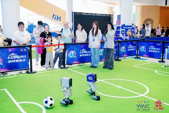 在“嘉年华”上,优秀作品展区展示了本届大赛的一些特别活动:比如,AIGC的多媒体作品展、青年报的学记团在今年7月去世界人工智能大会的采访等,充分展现了大赛内容的精彩纷呈。而互动体验展区则包含了各类趣味盎然的AI体验活动。机器人足球、模拟飞行体验、AI造物趣桌……将生成式人工智能融入一个个有趣的体验中,以亲切、好玩的方式,让参与者感知“未来生活”的种种可能。