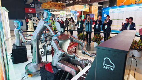 中新网上海新闻11月11日电(记者 康玉湛) 近日,第八届中国国际进口博览会在上海举办。在人文浙江展区内,一场别开生面的演出正吸引着众多参观者驻足。一支名为“和璇”的机器人乐队,以其金属之躯精准演奏着钢琴、扬琴和架子鼓等乐器,奏出和谐悦耳的乐章。这并非简单的机械展示,而是杭州海创人形机器人创新中心(浙江大学机器人研究院)带来的,一场科技与人文深度交融的创新成果展示,彰显了其在人形机器人前沿技术领域的突破性进展。