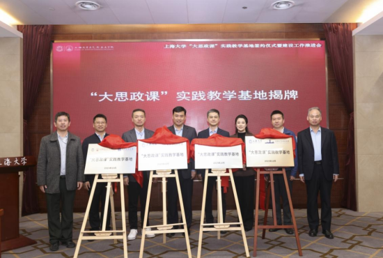 四家实践教学基地与上海大学马克思主义学院进行结对共建签约,并共同为四个上海大学“大思政课”实践教学基地揭牌。