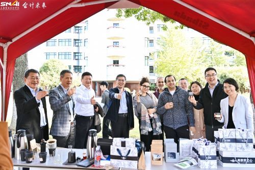 作为校友日备受瞩目的主场活动之一,今年诚信大道再度化身“校友商街”。近四十家企业依次铺展,服饰美妆、家居文创、风味小吃、智能汽车与工业精品分区陈列,一路琳琅满目。公益“爱心刮刮乐”帐篷前人潮涌动,长龙蜿蜒;摊位间问好声、成交声此起彼伏,热络氛围把秋意烘成暖意。SNAI咖啡吧今日正式开业,醇香咖啡与精致点心齐亮相,为校园人文氛围再添一抹暖色。