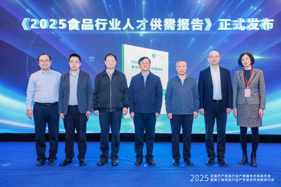 备受关注的 《2025食品行业人才供需报告》 在开幕式上正式发布。该报告由全国农产食品行业产教融合共同体联合食品伙伴网、上海城建职业学院等单位共同编写,报告系统梳理了教育政策背景、产业布局特征、人才需求结构、培养供给现状及产教融合实践,深度剖析供需失衡的内在原因,并提出应对策略,以期为政府、企业、院校等多方决策提供重要参考。
