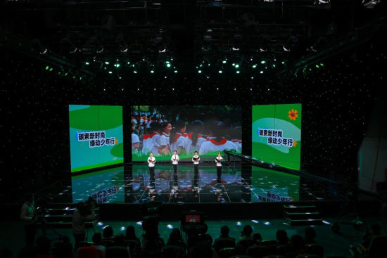 在学段展示环节,不同年龄段的学子各展所长。小学组以“童言话低碳”传递绿色心声,来自上海市民办尚外外国语小学的丁爱源、张奇楠、李尚毅、樊苡聘四位同学带来了朗诵表演《给未来一片绿色》,用充满感染力的声音描绘了绿色家园的美好愿景。