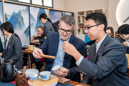 这场高规格研讨会背后,是近年以来持续推进的中德师生深度交流。今年9月,工商外师生率先赴德,走进欧洲中心学校的商务模拟公司与化学实验室,开展项目式学习,通过针灸讲座、中草药茶配制等课程中实现东西方教学理念的深度融合。德语专业学生方敬逸在一堂德国教授主讲的中医课上深受震撼:“看到德国教授熟练地进行针灸演示,深切感受到中医在海外获得的尊重。”这段经历不仅让他克服了德语交流障碍,更坚定了他成为国际交流桥梁的职业理想。11月,德方师生回访,通过汉服茶艺、书法等课程沉浸式体验中国文化,并参访中医药博物馆,深入理解传统智慧与现代生活的融合。这一系列双向互访,以真实可感的课程研讨,为中德职教融合奠定了坚实基础。