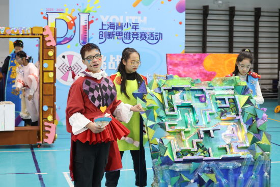 来自上海戏剧学院附属浦东新世界实验小学的“世界星”队是技术类挑战一等奖得主。今年的赛题“游戏争冠”要求参与者运用工程知识、调研技巧、策略规划等相关技能来完成任务。这支涵盖小学二年级至五年级的队伍以时空循环为叙事框架,讲述了不同角色轮流失忆的故事。每名成员都是首次参赛,在三个月的紧张备赛中,既要快速迸发创意,又要高效分工,有人擅长方案设计、有人专注手工制作、有人负责表达展示,形成了互补优势。“虽然每天排练很辛苦,但是比赛后看到观众的笑容,我们感到非常自豪!”五年级的邓圣雅表示。同为五年级的冀若韬表示,“DI锻炼了我们手工、表演、朗诵等能力”。
