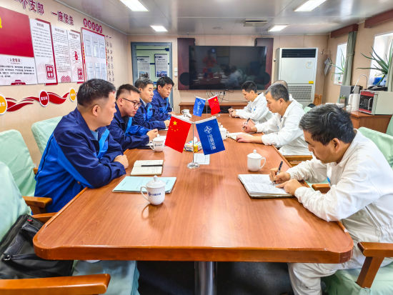 面对寒潮大风带来的复杂作业环境,项目部始终秉持“安全第一、效率至上”的核心理念,确保清淤任务高质量推进。为高效推进清淤任务,项目部连夜组织召开施工部署专题会议,技术骨干团队依托最新航道测图数据,对施工区域进行科学划分,针对不同航段的淤积厚度、泥沙特性,量身定制差异化施工工艺。施工现场,船舶甲板上灯火通明,技术人员紧盯监控屏幕,实时监测疏浚参数并反复优化调整;船员们顶风冒寒,仔细检查耙头、疏通输送管线,全力保障每艘船舶以最佳状态投入到施工作业中,各岗位人员默契配合、协同联动,五舰列阵宛如一支训练有素的海上舰队,在统一指令下有条不紊展开攻坚。
