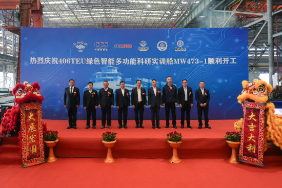 中新网上海新闻12月30日电(许婧)记者30日从上海海事大学获悉,该校与洲际船务集团控股有限公司联合打造的406TEU绿色智能多功能科研实训船(406TEU:TEU为Twenty-foot Equivalent Unit缩写,即“20英尺标准集装箱”,406TEU代表船舶可装载406个标准集装箱)开工建造仪式29日举行。