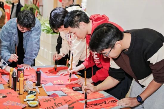 联欢会前,学校精心设置民俗体验环节,中外学子共同参与包饺子、写对联、拓印画、年味手工等活动。大家在动手实践中沉浸式领略中华优秀传统文化的魅力,揉面包饺子、挥毫写福联、巧手做手工,在一件件手作成果中感受中国年的独特底蕴,让这个新春更具意义与温度。