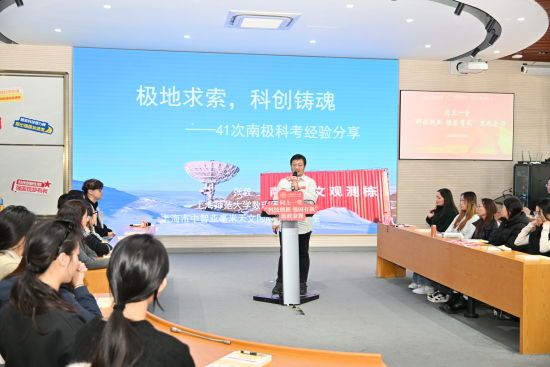 张毅以“极地求索,科创铸魂”为题,结合第41次南极科考越冬考察的亲身经历,通过大量翔实珍贵的图文资料、数据和鲜活案例,生动阐述了极地科考对于国家战略安全的重要意义以及极地科考背后蕴含的科创精神。他深入剖析了南极洲独特的战略价值,系统梳理了中国南极科考从起步到发展、从跟跑到并跑乃至部分领跑的艰辛历程,清晰展现了我国极地科考事业的蓬勃发展态势。结合科考工作的生活日常,张毅重点分享了国产装备在南极科考中的广泛应用与重要作用。他指出,这些实践充分印证了“关键核心技术要不来、买不来、讨不来”的硬道理,彰显了我国坚持自主创新的坚定决心与显著成效。科技强国不是抽象口号,而是国家主权、安全、发展利益的硬核支撑。他勉励青年学生,以“坐得住冷板凳、啃得下硬骨头”的韧劲,以科考精神为帆,以青春理想为桨,在科研中沉淀匠心,在实践中锤炼本领。