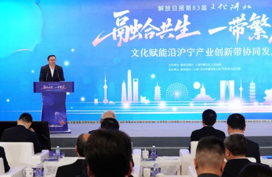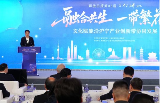 11月15日,解放日报第83届文化讲坛在普陀区举行,以文化赋能沿沪宁产业创新带协同发展,充分发挥文化软实力凝聚共识、形成合力的独特作用,助力国家战略纵深推进。解放日报社党委书记、社长陈颂清,党委副书记、总编辑丁波,党委副书记丁利民,副总编辑朱爱军;普陀区委书记胡广杰,区委副书记、区长赵亮,区委副书记赵勇,区委常委、宣传部部长刘东昌;华东电力设计院党委书记、董事长周毅,华东电力设计院党委委员、副总经理、总工程师叶勇健;来自沿沪宁八市的市委宣传部、市级媒体领导和沿沪宁企业家代表出席活动。