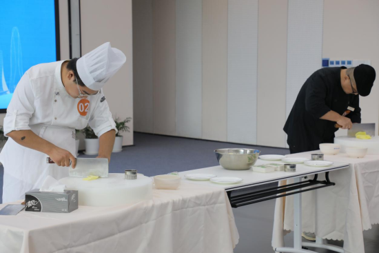 在中餐服务比赛环节,选手们需在6分钟内完成“6人位中餐圆桌”摆台。骨碟严格控制距离,杯具均匀放置成线,托盘平稳无声,摆台整齐有序,礼仪标准与操作流程并重。厨房刀工更是选手对“极致思维”的深刻考验:土豆切丝需粗细均匀、豆腐化作“水中绣球”般细腻、台面整洁,废料及时清理....。。既考验对工具的精准掌控,更检验卫生与规范的根基。
