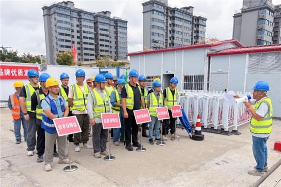 中新网上海新闻10月1日电(记者 康玉湛) 近日,为强化国庆、中秋“双节”假期施工安全管理,提升全员安全意识和应急处置能力,中铁上海局建筑公司上海蒂螺维珍生产研发基地项目部开展了产业工人安全事故应急演练。