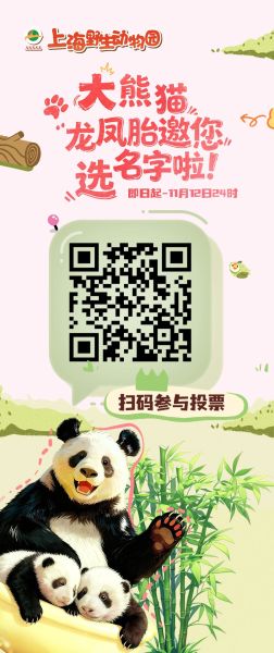 选名活动正在火热进行中,究竟哪组名字能最终脱颖而出?让我们拭目以待!据园方透露,大熊猫龙凤胎的最终得名将于11月18日园区30周年庆时对外公布。上海野生动物园呼吁更多人关注大熊猫保护事业,共同为构建人与自然和谐共生的美好未来贡献力量。