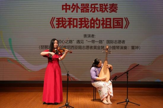 静安区“初心之路”遇见“一带一路”国际志愿者上海大学国际学生印度尼西亚籍志愿者黄金慧和中国志愿者董坤带来器乐联奏《我和我的祖国》,上海视觉艺术学院的志愿者带来红色场馆组诗朗诵《红色静安 光荣足迹》,“红色志愿说”情景剧目汇演环节中,中共中央军委机关旧址纪念馆“小红苗”讲演团志愿者、中福会附属儿童艺术进修学校学生带来情景剧《父亲的信》,中共二大会址纪念馆巾帼志愿服务队带来情景剧《起点,巾帼的觉醒》(蔡和森、向警予130周年纪念版)片段,静安残联艺术团队聋人舞蹈队带来原创舞蹈《半山腰的人》,纪念中国人民抗日战争暨世界反法西斯战争胜利80周年,中央特科机关旧址纪念馆的青少年志愿者演唱京剧选段《红灯记》,上海戏剧学院志愿者沈采演唱《天耀中华》,上海大学上海电影学院等青年代表领唱,全体志愿者合唱《我爱你中国》。
