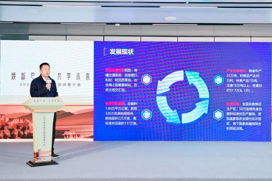 新疆巴楚县政协党组书记、副主席满其君介绍了巴楚“1+3+N”的现代化产业体系,即:以工业园区为核心载体,以棉花和纺织服装全产业链、绿色矿业、新能源三大主导优势产业为支柱,以农副产品精深加工、文化旅游、畜牧养殖、商贸物流等N种特色产业为补充。他强调,巴楚始终将营商环境视为“生命线”,持续释放政策红利,致力于打造高效便利的投资热土。