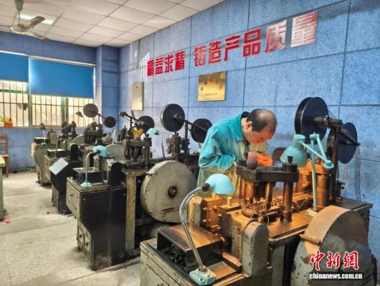 刘根敏在英雄金笔厂笔尖车间工作。上海市普陀区供图
