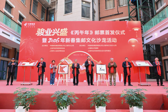 中新网上海新闻1月6日电(记者 郑莹莹)由中国邮政集团有限公司上海市分公司,上海市经济团体联合会、市工业经济联合会联合主办的“骏业兴盛”《丙午年》邮票发行仪式暨2026年新春集邮文化沙龙于1月5日在上海邮政大楼举行。