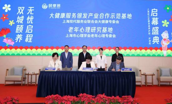 随后,上海颐享荟养老服务有限公司与上海现代服务业联合会大健康服务专委会、上海市心理学会老年心理专委会签署战略合作协议,并揭牌成立“大健康服务银发产业合作示范基地”与“老年心理研究基地”。松江区与黄浦区卫健委、医保局、民政局相关领导共同见证签约与揭牌,标志着项目在专业服务与学术支撑方面迈出坚实一步。