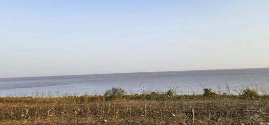 不远处,8.4公里海岸线上,新植的旱柳幼苗整齐排列,施工人员正加紧浇水管护。这片防护林将有效改善近海生态环境、增强海岸防护韧性,并为候鸟迁徙提供重要停歇地。