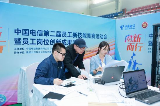 11月底的浙江邮电职业技术学院内热火朝天,“中国电信第二届员工新技能竞赛运动会暨员工岗位创新成果展”正如火如荼地举行。来自各省(区、市)公司的62名技能尖兵,在通信网络调试、AI应用实操、二次开发助力客户需求创新等项目中展开角逐。