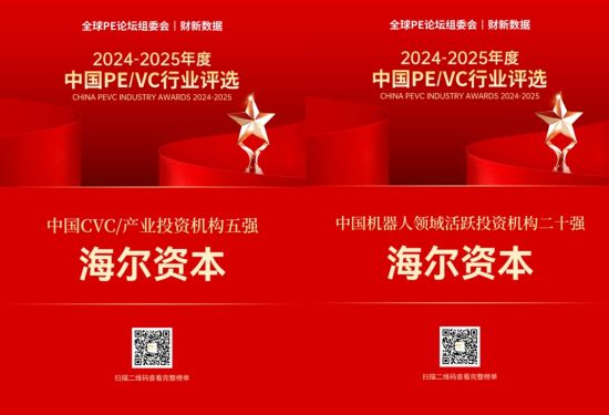 12月初,全球PE论坛正式发布“2024-2025年度中国PE/VC行业评选结果”,凭借在产业投资领域的卓越表现,海尔资本荣登“中国CVC/产业投资机构五强”“中国机器人领域活跃投资机构二十强”双榜。