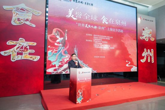 2026年1月24日,“美誉全球 食在泉州——‘世界美食之都·泉州’上海宣介会”圆满举办。本次活动由泉州市申创世界美食之都办公室、泉州市人民政府驻沪联络处与上海泉州商会联合主办,泉州市美食产业促进会、轮值会长单位上海安溪商会、劲霸男装(上海)有限公司、上海澳莉嘉食品有限公司(老香斋)协办。标志着泉州2026年度“世界美食之都”品牌系列宣介活动正式拉开帷幕。