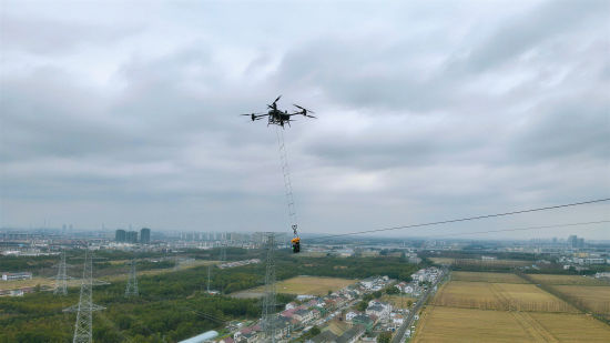 针对上述挑战,国网上海超高压公司创新采用“无人机吊装+地线修补机器人”的协同作业模式。作业现场,载重无人机将约13公斤的修补机器人精准吊装至470米高空地线上,机器人在地面人员远程操控下,沿线平稳行进至缺陷点,利用专用补修条对断股部位实施多层缠绕加固,单点修补作业时间控制在1小时以内,相比传统人工登塔修补作业时长缩短一半、作业人数减少一半,整体效率提升75%。该公司运维检修部专业工程师余快形象地比喻道:“整个过程就像为受损骨骼实施‘接骨固定’,通过层层加固,使地线重新具备可靠的机械强度,满足迎峰度冬可靠供电需求。”