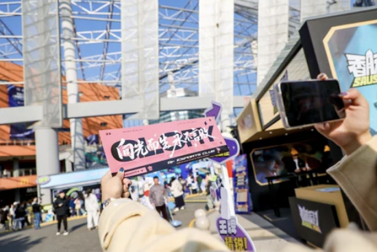 上海大师赛每年也在创新。在比赛现场,无畏契约决赛两支队伍从观众席中间走上舞台,队员两侧热情的手臂和如星光般闪耀的手机屏幕成为仪式感最好的装点。第五人格比赛前夜,热心观众深夜来到赛场,只为提前挂好助威横幅——胜利的歌我要再唱一遍。赛场外新增的数字文化市集,除了现场观众,参赛选手也被吸引,利用赛前空闲现场体验。今年在大宁音乐广场打造的观赛嘉年华,让赛事氛围溢出屏幕、扩出赛场,洋溢在周边商圈。当大宁久光国际最为醒目的屏幕和外墙都被赛事画面覆盖,文旅商体联动有了最为具体的展现。