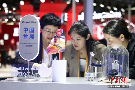 11月5日,观众在“全勤生”美敦力展台参观。当日,第八届中国国际进口博览会在上海开幕,众多跨国企业连续八届“全勤”参展,今年展览面积和企业总数均创历史新高。