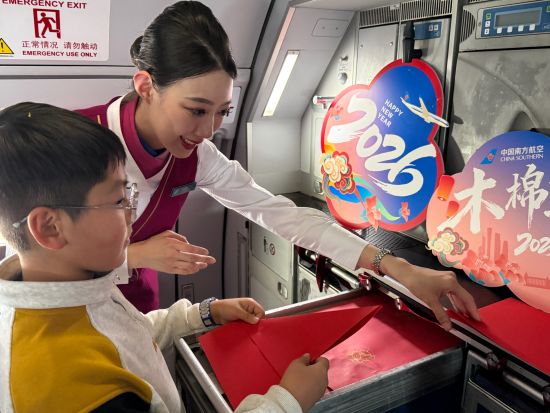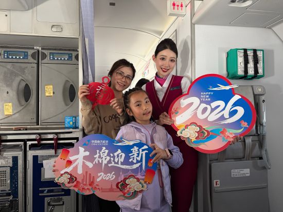中新网上海新闻1月3日电(殷立勤 韩筱 赵莹莹)2026年1月1日,中国南方航空上海分公司在CZ3678昆明飞往上海浦东的航班上组织开展“木棉迎新”主题航班活动,这架满载新年祝福的航班,将万米高空化作移动的新年派对现场,为旅客打造了一场别有风味的云端跨年出行体验。
