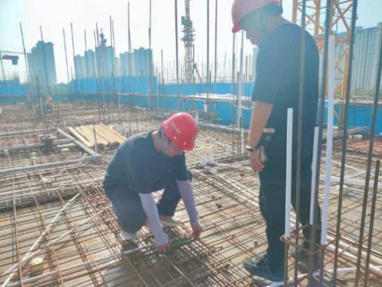 本次活动以项目11号楼主体结构施工区域为教学示范现场,技术部长带领青年技术员开展验收专项教学。针对当前施工关键环节,他严格对照设计规范与项目技术标准,逐项拆解验收要点,重点围绕钢筋工程、模板支护等核心工序,系统讲解验收标准与实操技巧。教学过程中,技术部长对验收全流程逐一演示规范操作,明确各环节质量标准及问题整改措施,要求建立“问题台账—整改闭环—复检归档”的全过程管理机制,确保验收工作精准高效。参与教学的青年技术员在现场同步记录要点、实践操作,通过“学练结合”深化对技术标准的理解与运用。“把课堂设在工地,让图纸知识与实体工程无缝衔接,这种教学方式让我们对验收要点的理解更直观透彻。”项目技术员深有体会地表示,经过现场手把手指导,原本抽象的规范条款变得具体清晰,实操能力得到显著提升。