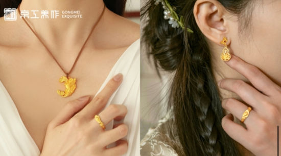 依托团队的深厚积淀,京工美作始终践行“典藏之作 手作之美”的品牌理念,在设计上实现传统与现代的精准平衡。推出的古法金饰系列,既保留了宫廷器物的典雅庄重,又通过简约线条与轻量化设计适配日常佩戴场景,让非遗技艺真正融入现代生活。从婚嫁系列的大气华贵到日常通勤的精致小巧,实现“典藏价值”与“日常美学”的双重满足。