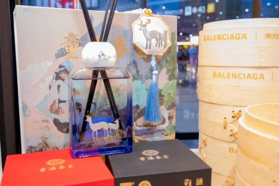 在品牌跨界领域,百年老字号南翔馒头展示了其与法国时尚品牌巴黎世家展开创意合作,推出的融合中西特色的限定美食黑松露小笼包以及兼具传统与时尚的定胜糕。南翔馒头还与美妆品牌WEI蔚蓝之美跨界联名,带来小笼包造型手工皂,进一步拓展了老字号在生活美学领域的表达维度。