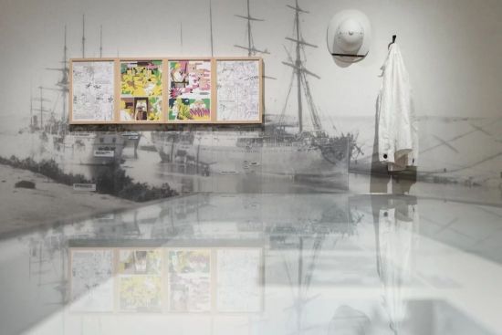 “身份”单元展示艺术家们如何以漫画语言与多媒体装置探索身份的流动性、母职经验、文化记忆与社会角色。马蒂娜·瓦尔特的《阿尔贝蒂娜的梦幻商店》以温暖而富寓意的故事探讨“他者愿望”与“自我实现”的平衡,以及自我认同等更深层的主题;萨拉·富雷在驻地期间创作的特定场域墙画,将旅行经验中的文化细节转化为鲜明视觉;诺艾米·法蒂奥围绕身份这一主题展开,构建了一场关于自我发现与社会期许的视觉对话;马丁·厄什凭借细致的画风与作为肉铺老板的个人经验,在视觉吸引力与思辨性之间寻找平衡,探讨劳动、伦理与身体文化;桑德罗·拉姆塞耶的《香缇之地》聚焦现代身份困境,揭示在资本化社会中构建“真实自我”的难题。这一单元中的作品在美术馆空间中形成多重叙事交错的场景,使身份成为不断生成的开放结构。