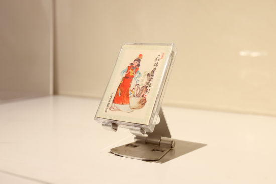 《通灵宝玉》,朱刚戏画创作生涯中第一幅戏曲人物画,成为展览的引子。那是上世纪80年代,一个卡带风靡的年代,朱刚在上海有声读物公司担任美术编辑。为《红楼梦》广播剧卡带设计封面时,他一改当时音像制品用艺人大头照作封面的套路,尝试用水墨画了一幅贾宝玉。画中的宝玉一袭红衣,胸佩灵玉,俊逸潇洒,很是传神。在越剧《红楼梦》中分饰贾宝玉、林黛玉的前辈艺术家徐玉兰、王文娟看过这版封面设计后,拍手称好,还情不自禁哼唱起“天上掉下个林妹妹”。朱刚由此坚定起对戏画的信心。